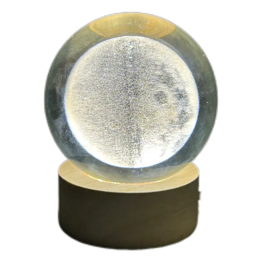 وتضيء بضوء LED ناعم يشبه ضوء القمر، مع قاعدة أنيقة من الخشب الطبيعي غير المطلي.